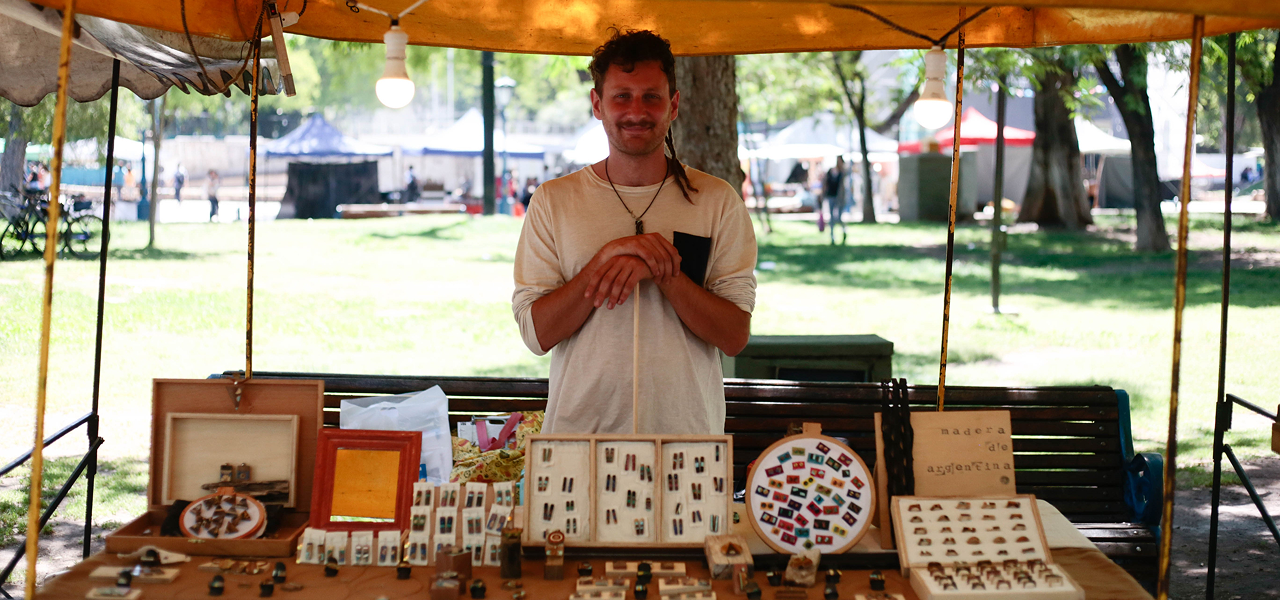 Realizo trabajos de bisutería en madera mezclando distintos materiales y técnicas. Me gusta la fusión entre las formas arquitectónicas y geométricas con lo orgánico de los materiales.